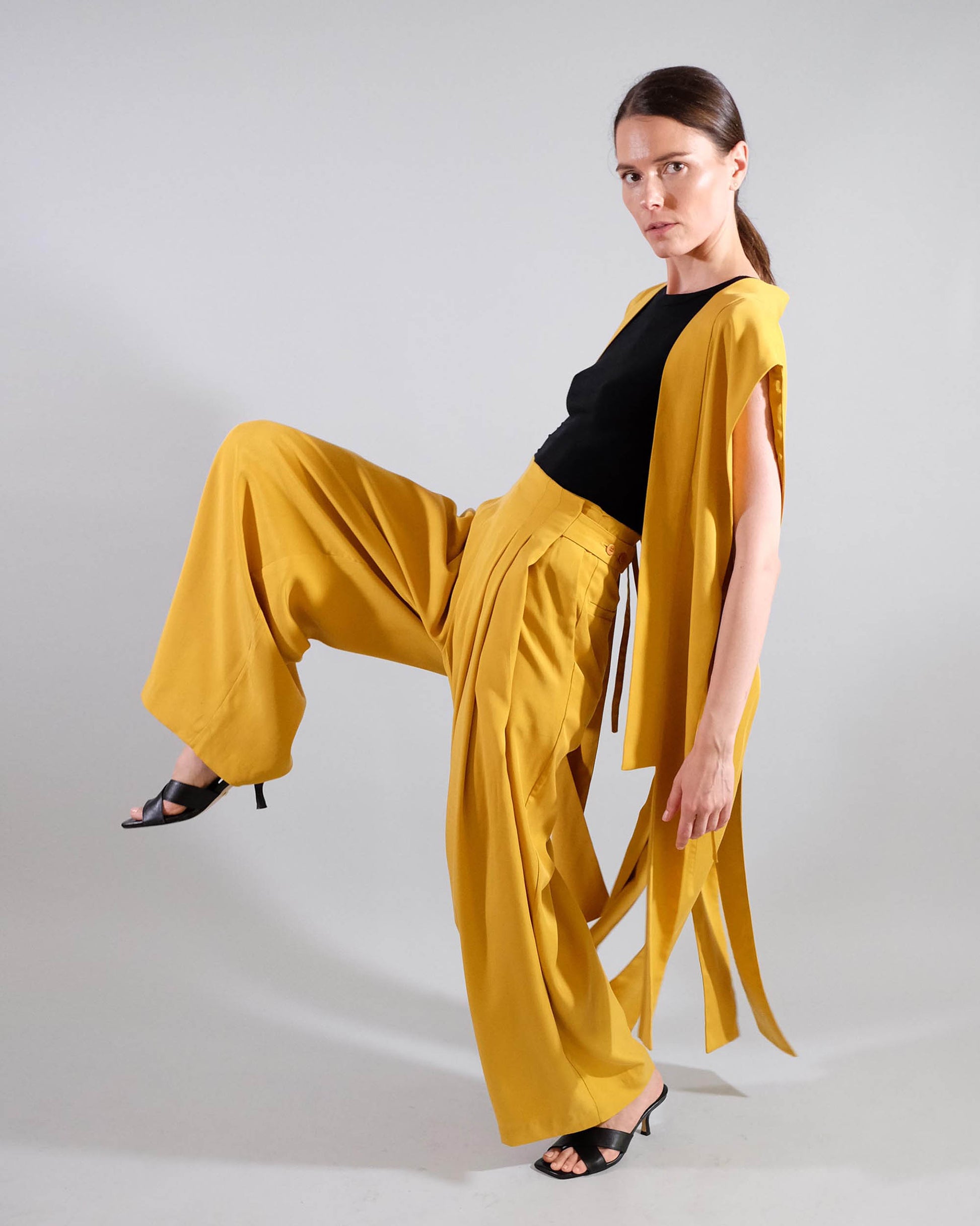 El pantalón LULO surge de la idea de crear un pantalón muy confortable, muy actual, pero a la vez atemporal. Para su desarrollo hicimos numerosos prototipos y lo probamos en cuerpos muy diferentes hasta encontrar un encaje que se adaptara bien a diferentes formas de cuerpo. Es un pantalón ajustable con tres posiciones que da cobertura a varias tallas en un solo pantalón.