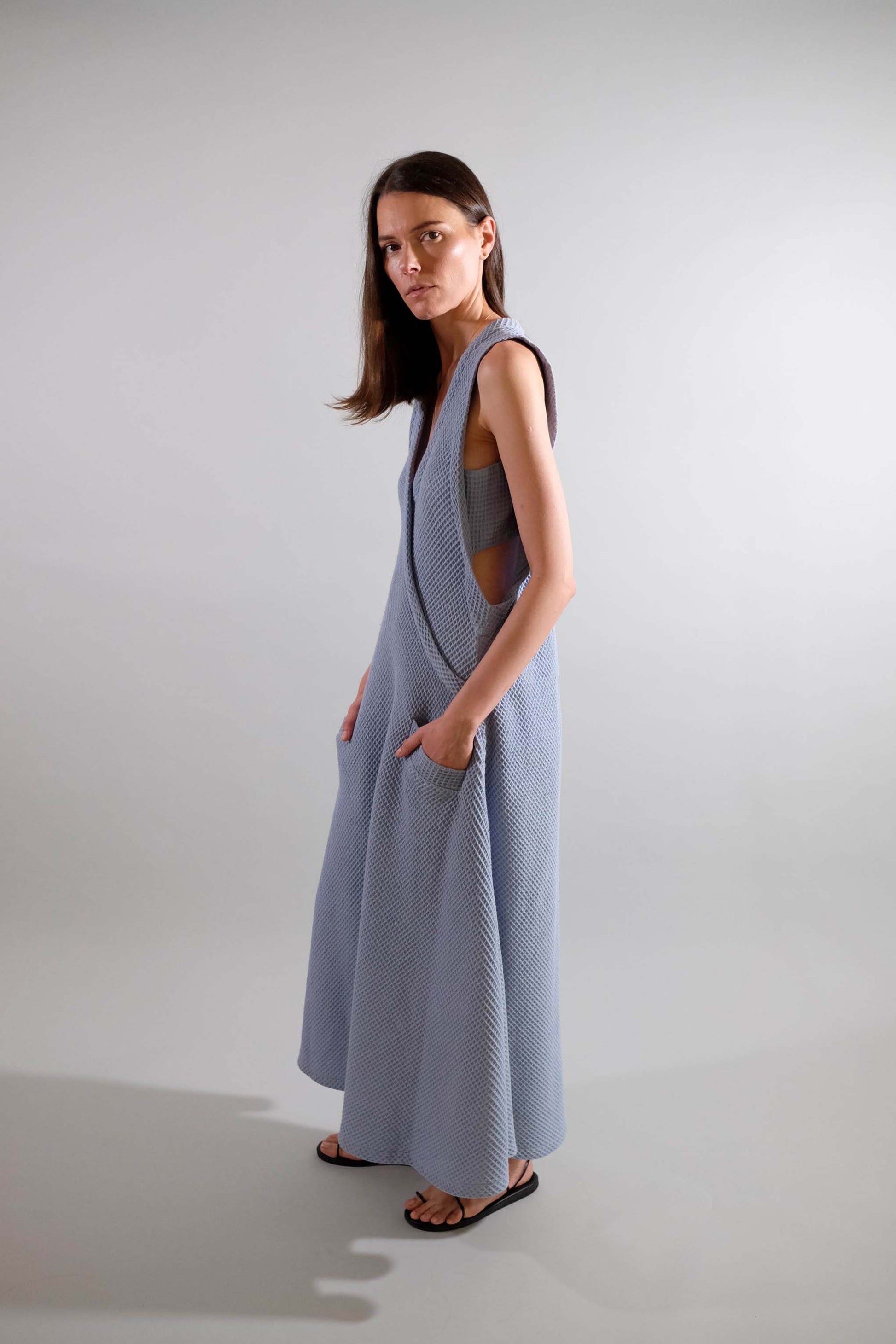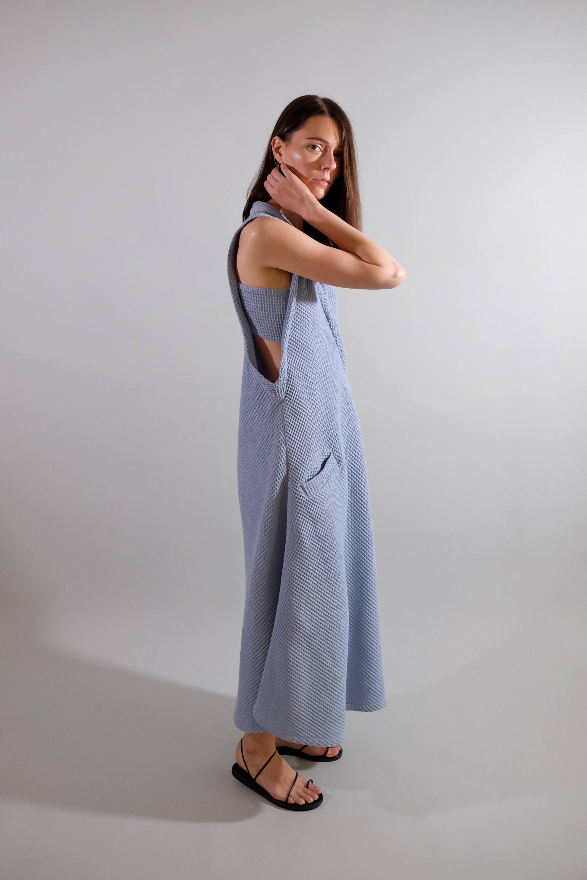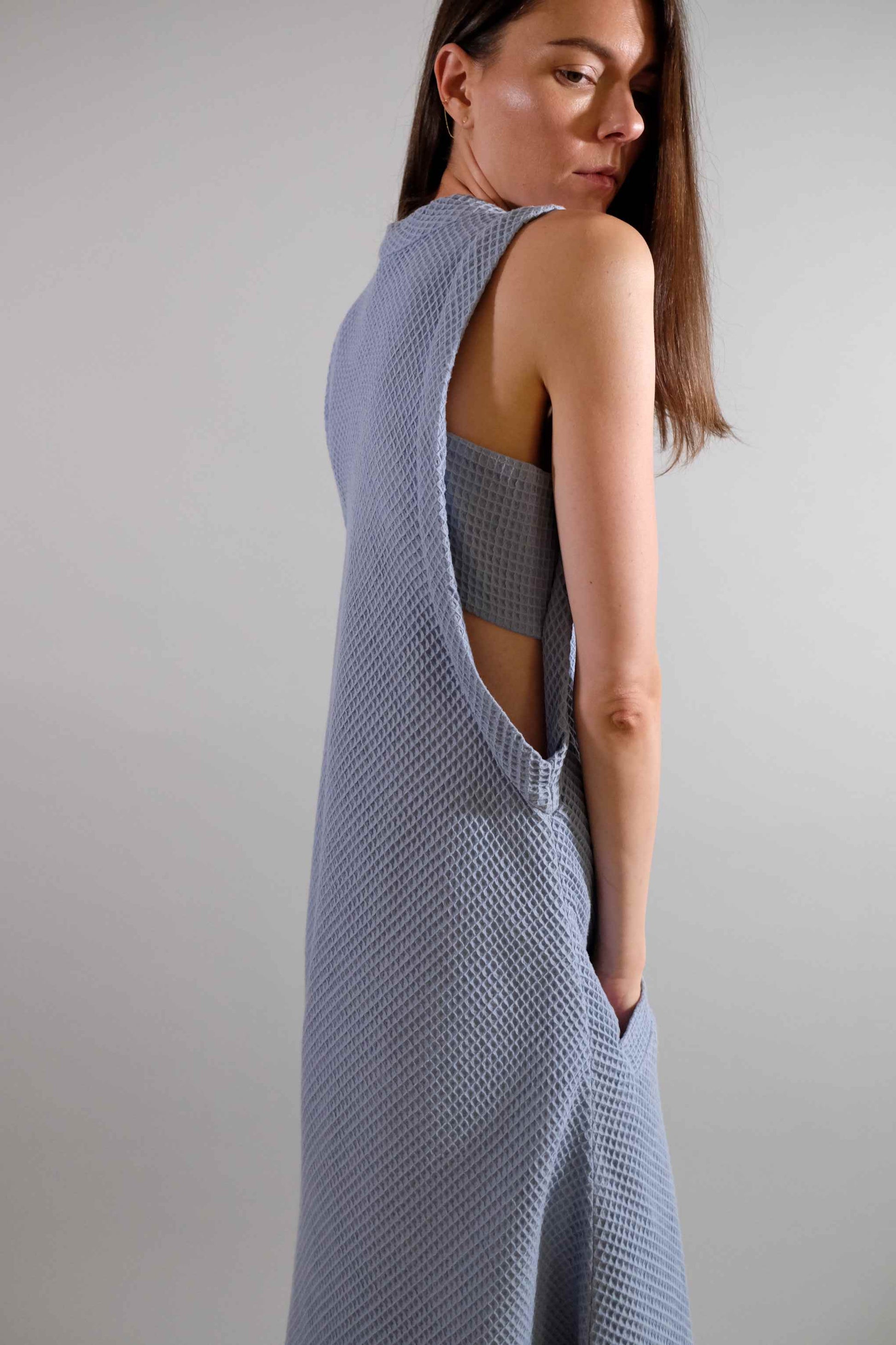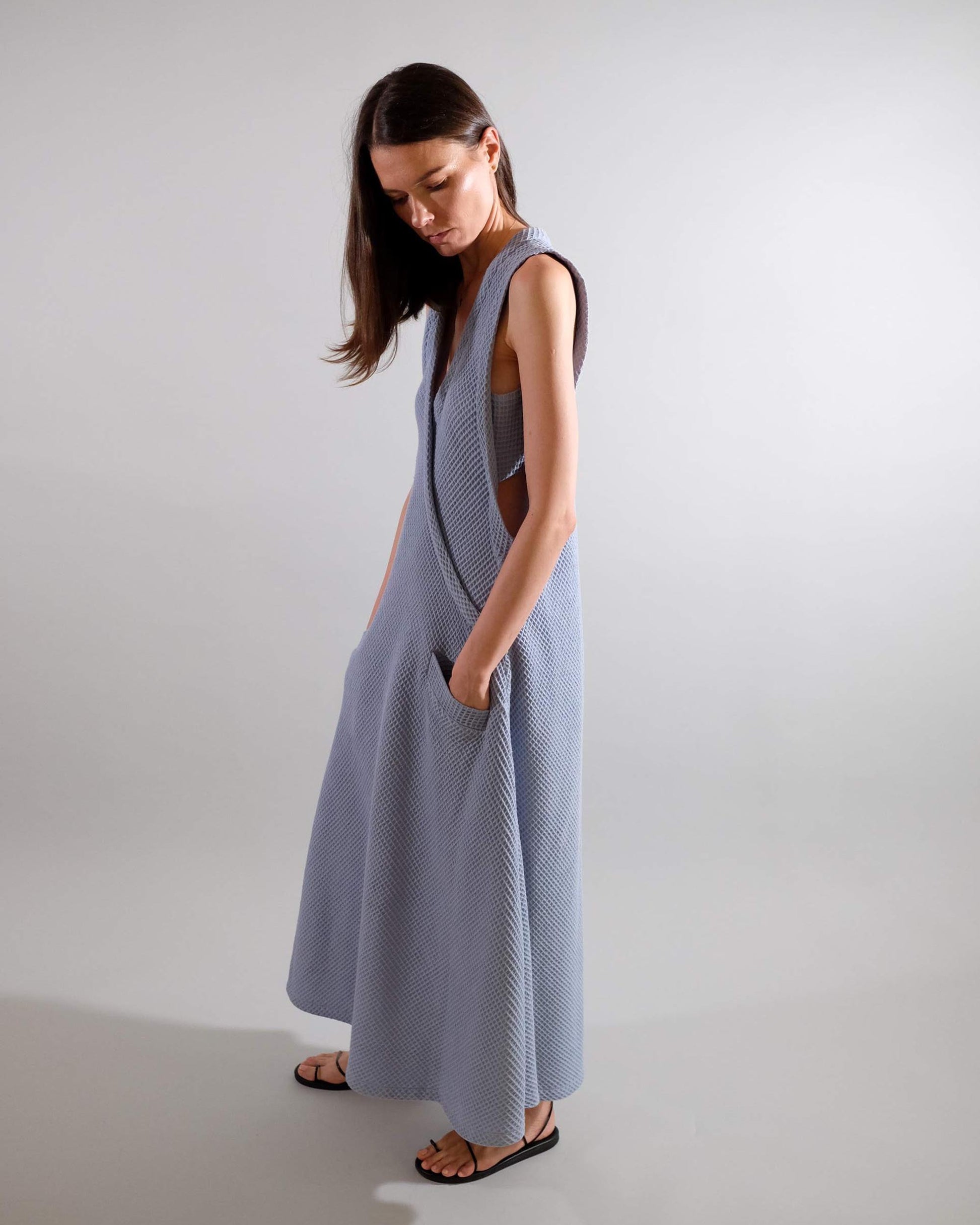 Este vestido es el resultado de nuestra pasión por el verano y por lo que este representa. Cada vez que vemos algo que nos inspira, lo guardamos hasta que un día nace de ahí una nueva forma, un nuevo material y en este caso una nueva pieza.
